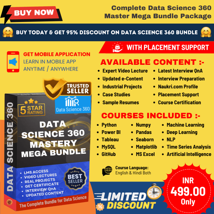 The Data Science All-in-One Mega Bundle is available at a limited-time price of just ₹499 (originally ₹10,000) with lifetime access included.