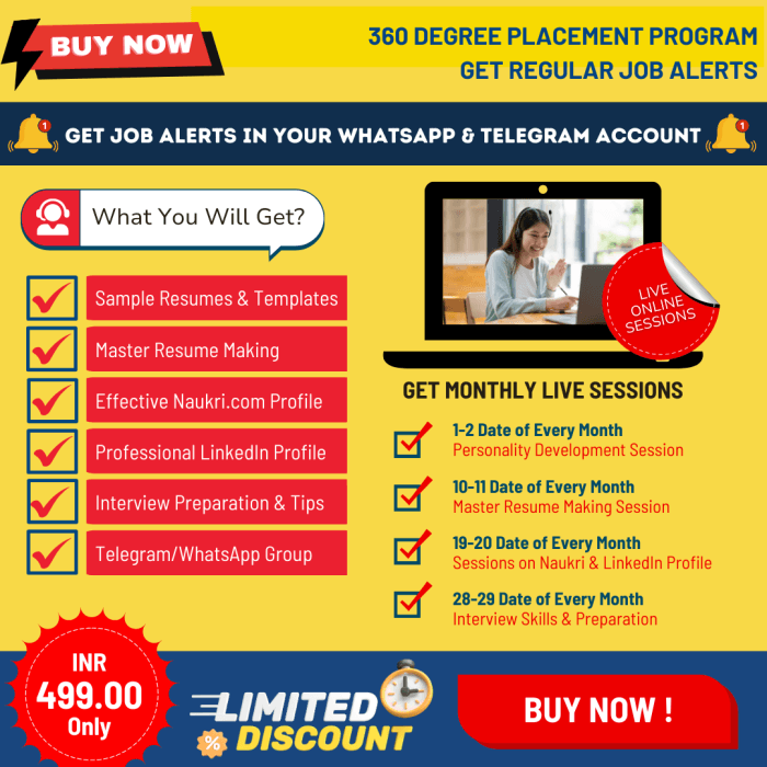 Absolutely. We provide 360° placement support, including resume sample & templates, Real Interview MNC Series, resume building, LinkedIn/Naukri profile creation, mock interviews, and exclusive job alerts via our premium WhatsApp group.
