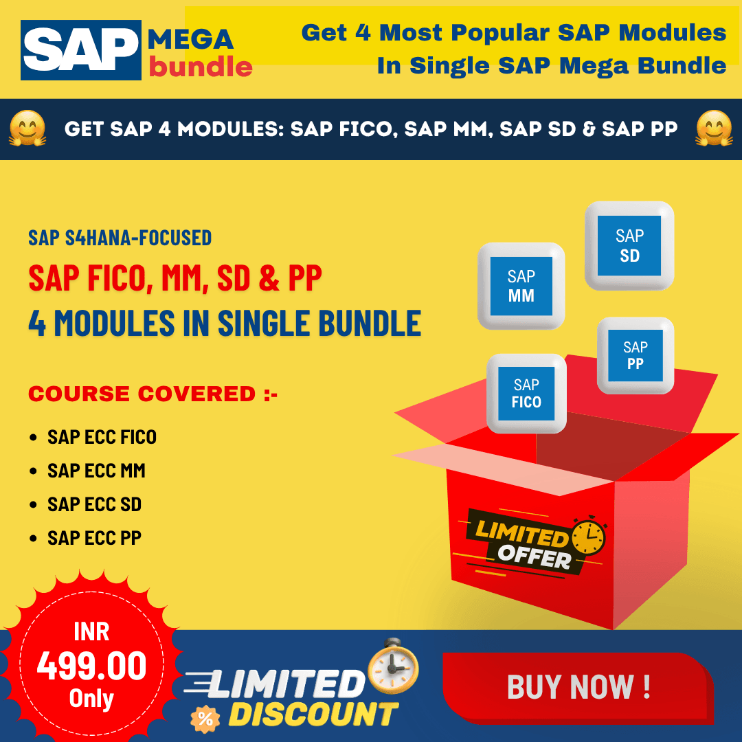 📚 4 In-Demand SAP Modules in One Bundle – Master 4 powerful SAP modules—FICO, MM, SD, and PP—to gain end-to-end expertise in finance, procurement, sales, and production, making you a highly valued SAP professional.